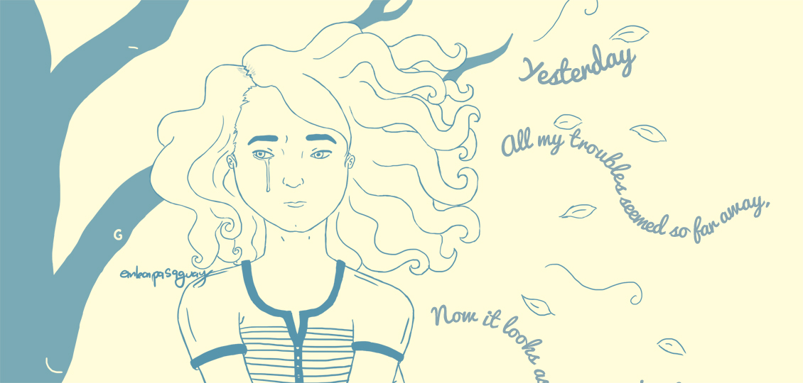 Toda la semana me ha dado vueltas en la cabeza esta canción Yesterday de The Beatles, así que, además de cantarla en la ducha y tararearla decidí ilustrarla.