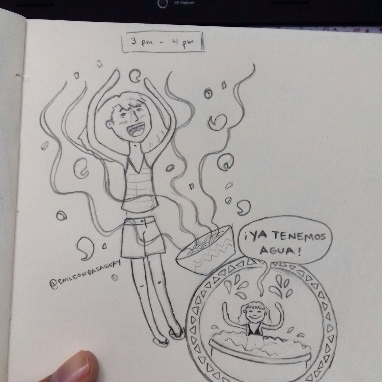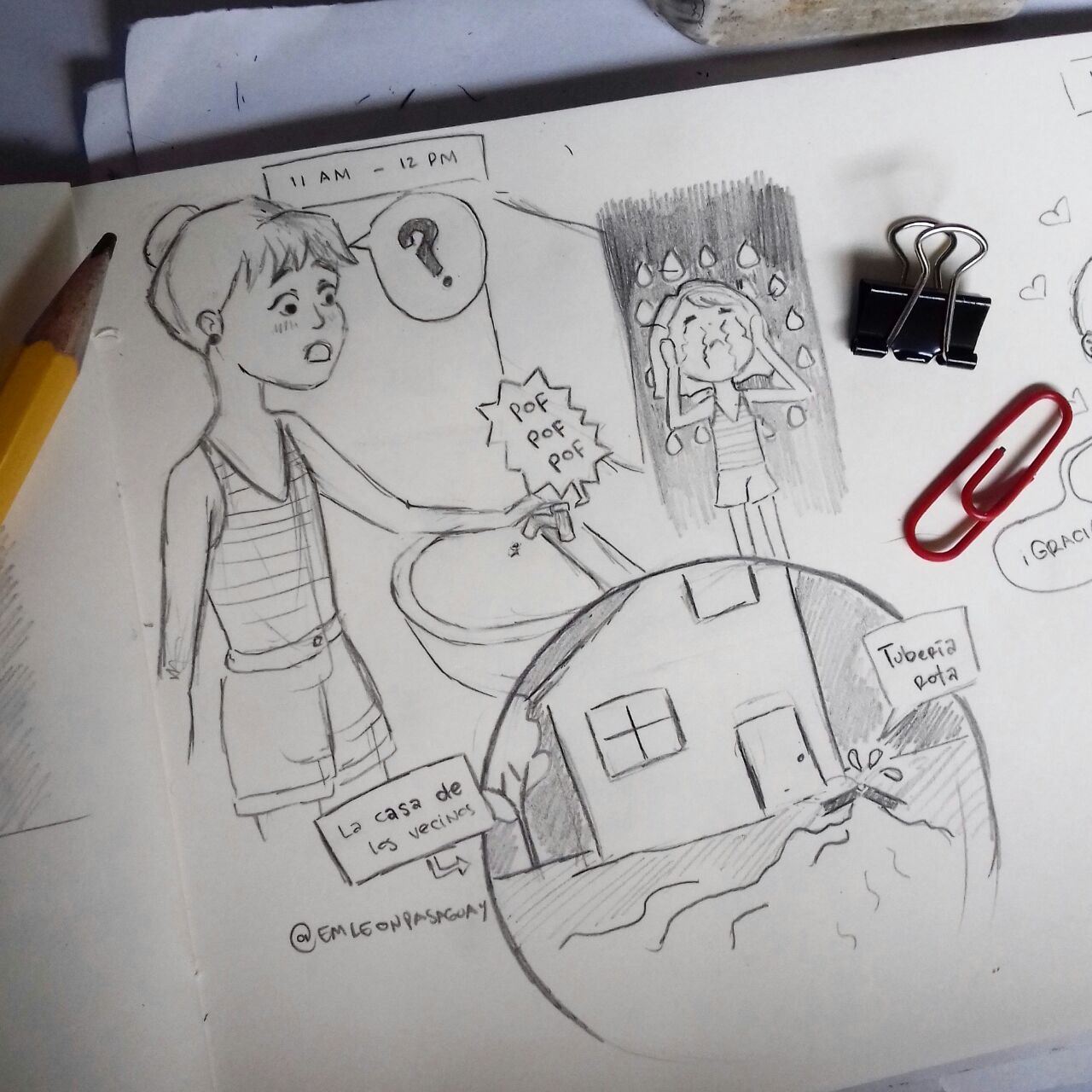 La noche anterior se rompió una tubería en la casa que queda frente a la mía, y para repararla sin avisar cortaron el agua a las 2 manzanas. Me di cuenta que no teníamos agua cuando quería lavarme las manos.