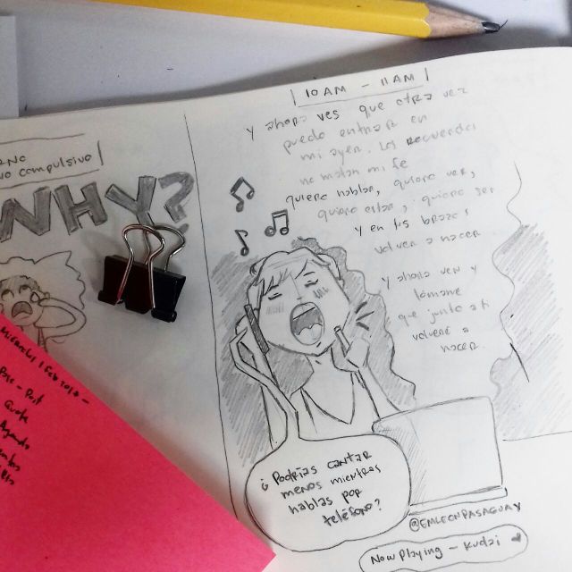 Entonces pensé: ¡AL DIABLO TODO! Me levanté y empecé agarré el cuaderno y no tenía idea por donde empezar. Y sin tener idea de qué estaba haciendo, o cómo quería que se viera, empecé a dibujar. Después de un rato de estar trabajando en las historias superé e miedo y los pensamientos negativos y fui consciente de que podía lograrlo.