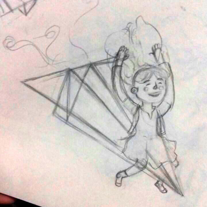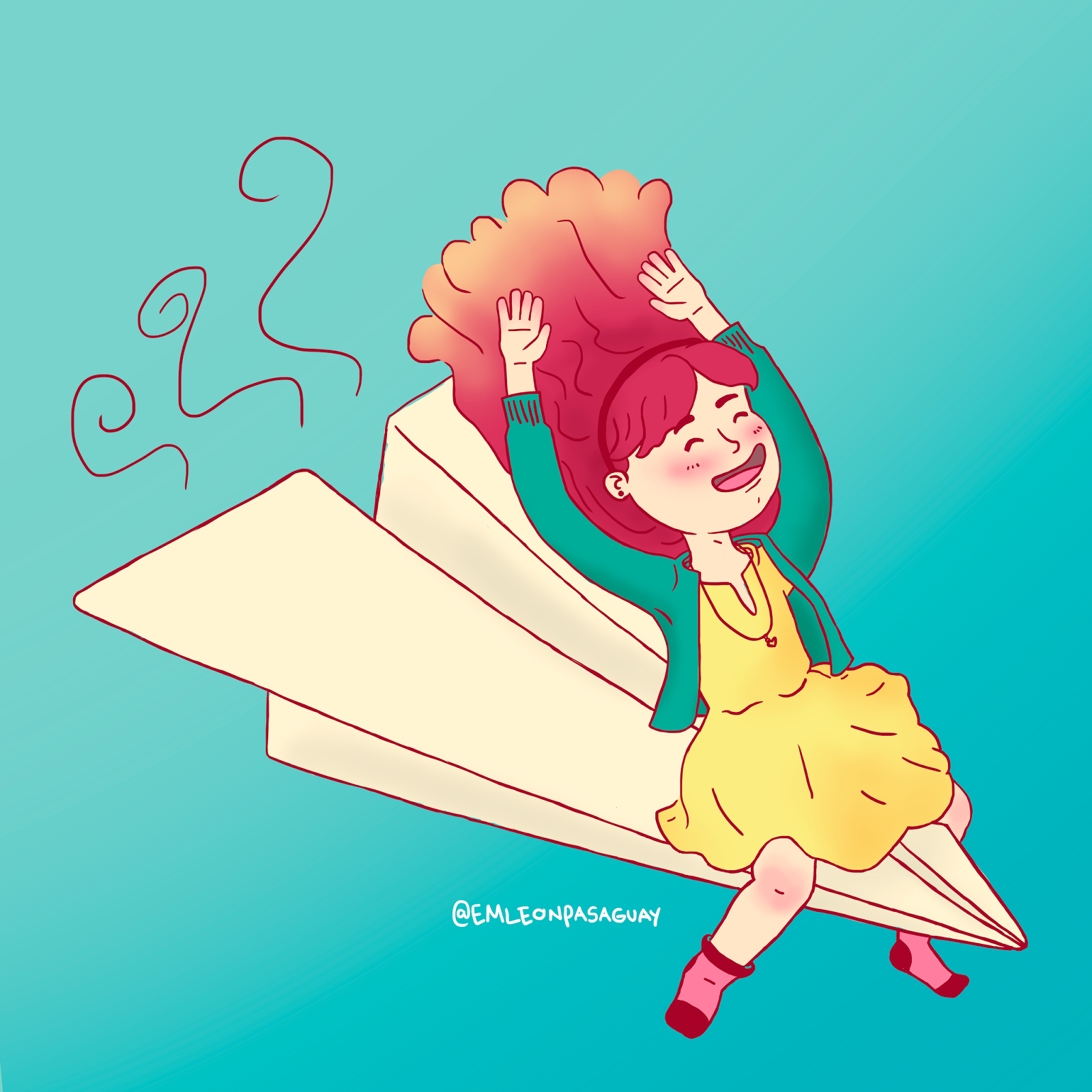 Y al final así quedó la niña sobre el avioncito de papel.