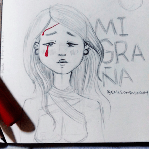 Hola queridos míos, he estado algunos días enferma, algunos sin ganas de dibujar, otros sin ideas. No quería quedarme sin dibujar algo el día de hoy, por esta razón busqué otra forma de graficar la migraña.