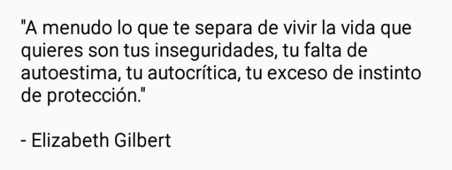 También quiero compartir con ustedes una frase que me gustó mucho del libro de Elizabeth Gilbert que doy leyendo en este momento.