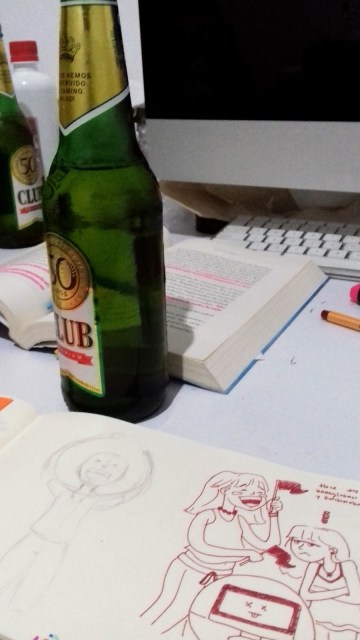 Pasadas las 6 de la tarde bebimos cervezas en la oficina mientras esperabamos que bajara la lluvia.