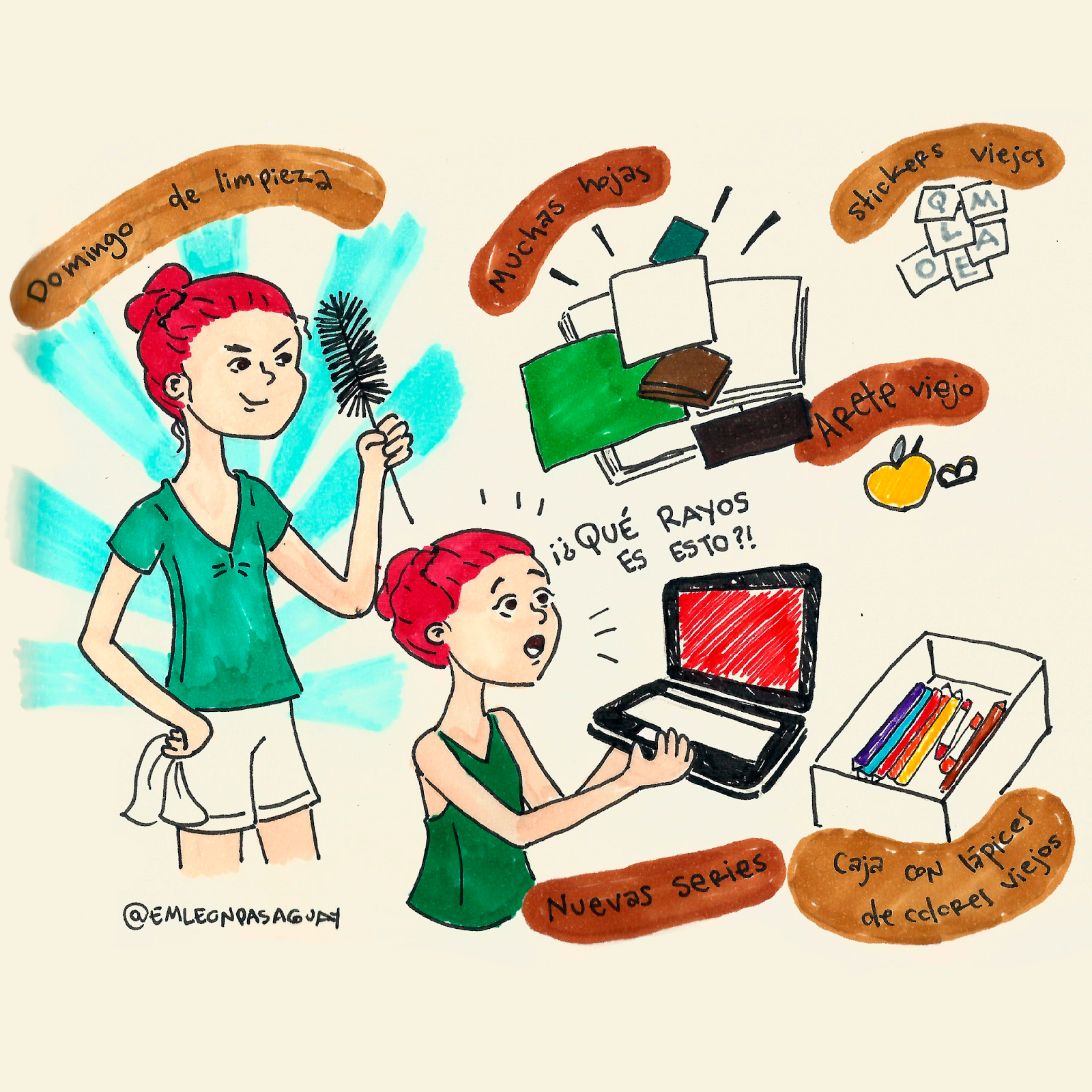 Fran vino a casa y estuvo revisando la lavadora (sí, Fran tiene una vaga idea sobre cómo arreglar una lavadora), mientras tanto yo me estuve limpiando las repisas y cajas donde guardo mis libros, sketchbooks, hojas, lápices de colores y pinturas.
