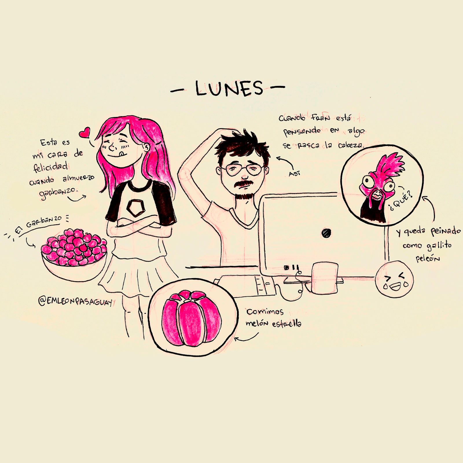 Durante la media mañana salimos a comprar frutas y en la despensa encontramos un melón estrella de unos 20 cm de diámetro, que al final del día comimos entre Fran y yo. Por otro lado, hoy almorcé garbanzo y no saben cómo lo disfruté.