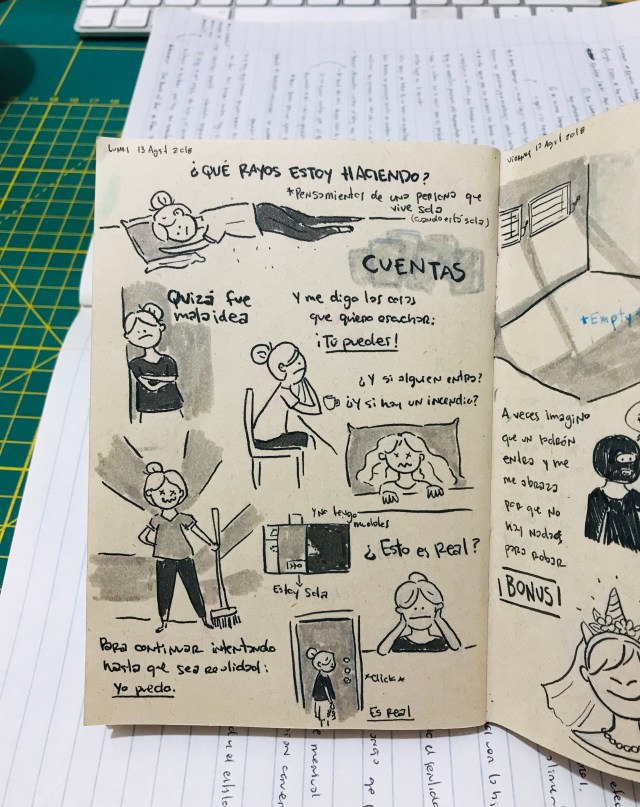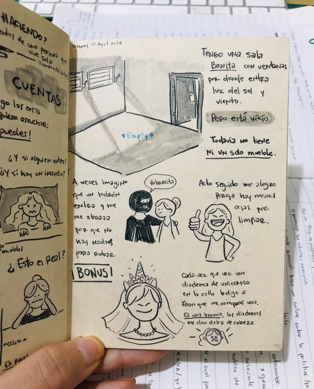 Nunca antes del día que me mudé se me había ocurrido que era necesario comprar una cama, ¿para qué quería yo comprar una cama propia si ya había una donde dormir en casa de mi mamá?, ¿dónde consigo una mesa a buen precio? Eran cosas tan básicas que no se me había ocurrido pensar en ellas, como «hija» lo había dado por sentado todo. Como si solo pestañear hiciera que aparecieran las cosas en la casa. Sin embargo si tenía libros, cuadernos de dibujo y lápices por montón.