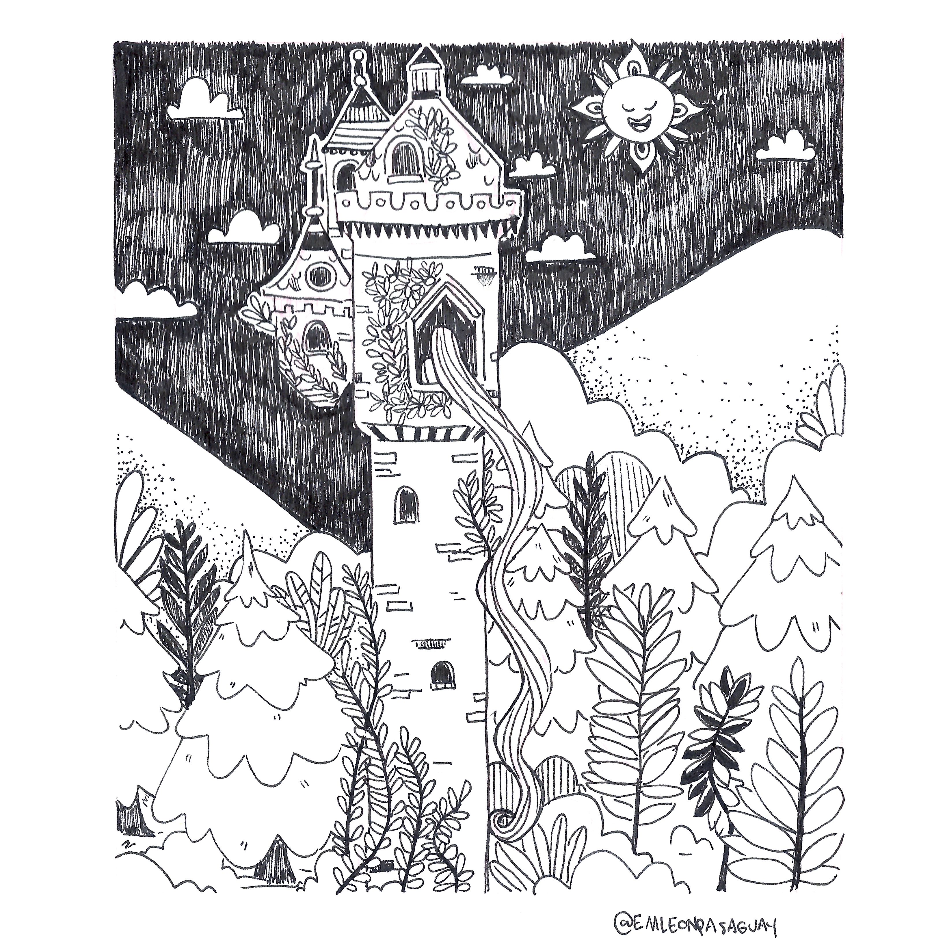 Ilustraciones de escenas de cuentos clásicos de hadas.